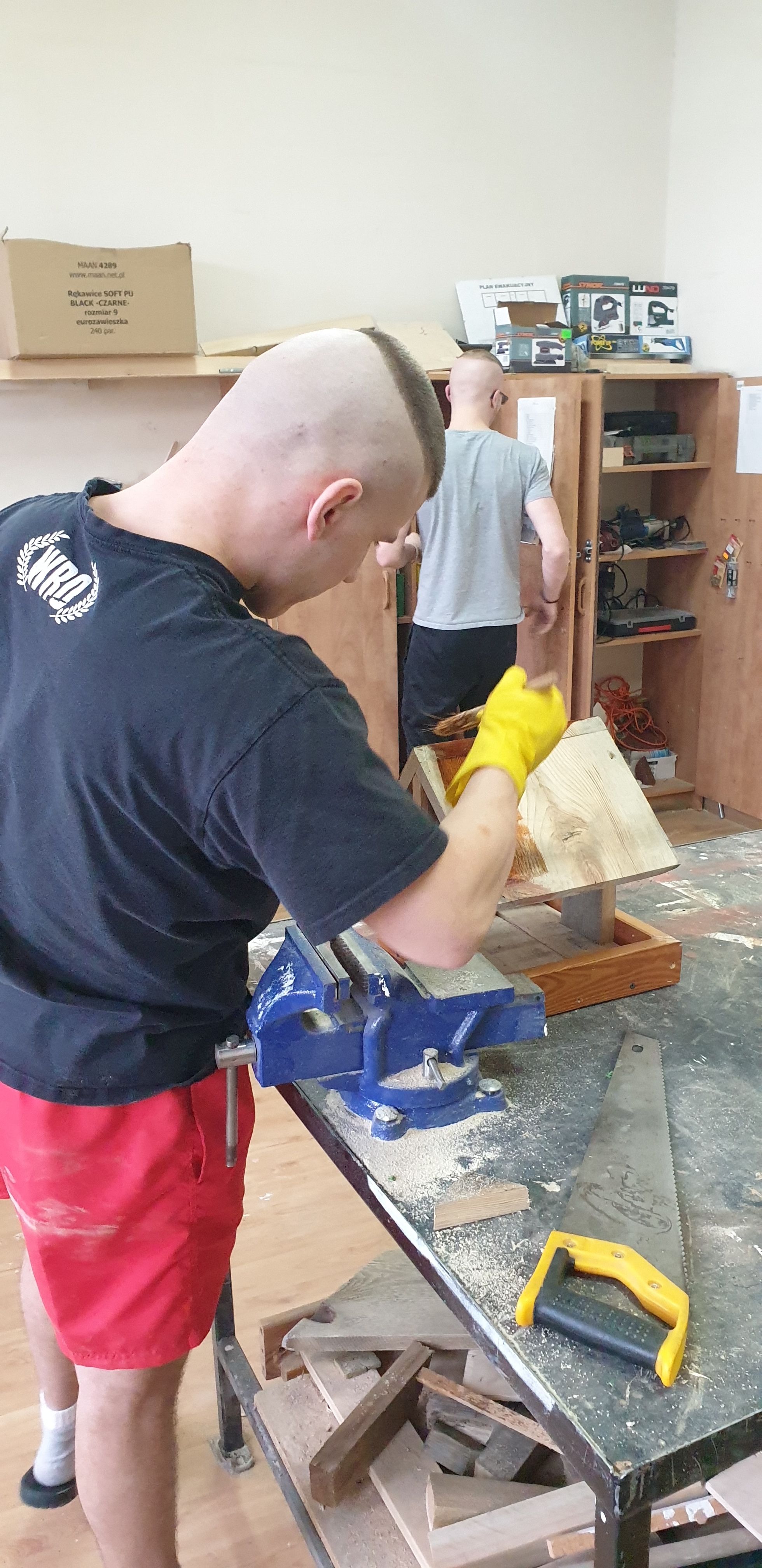 na rozwijanie kompetencji zawodowych min. w kierunku stolarstwa. Wychowanie przez prace i do pracy to bardzo ważny element procesu rozwoju zawodowego oraz społecznego. Zgodnie z założeniami tejże koncepcji wyposażamy wychowanków w wartości potrzebne do wykonywania pracy, podnosimy zaangażowanie w samodzielne myślenie twórcze, doskonalimy zdolności i umiejętności podopiecznych przysposabiamy do aktywnego uczestnictwa w życiu społecznym. Edukacja przez prace to skuteczna i naturalna droga do kształtowania własnej osobowości i charakteru oraz odnalezienia sensu i wartości pracy i siebie samego w niej . Prace w stolarni to odnawianie starych często zabytkowych elementów wyposażenia mieszkań oraz wykonanie domku do owadów, a także odrestaurowanie starego ula.