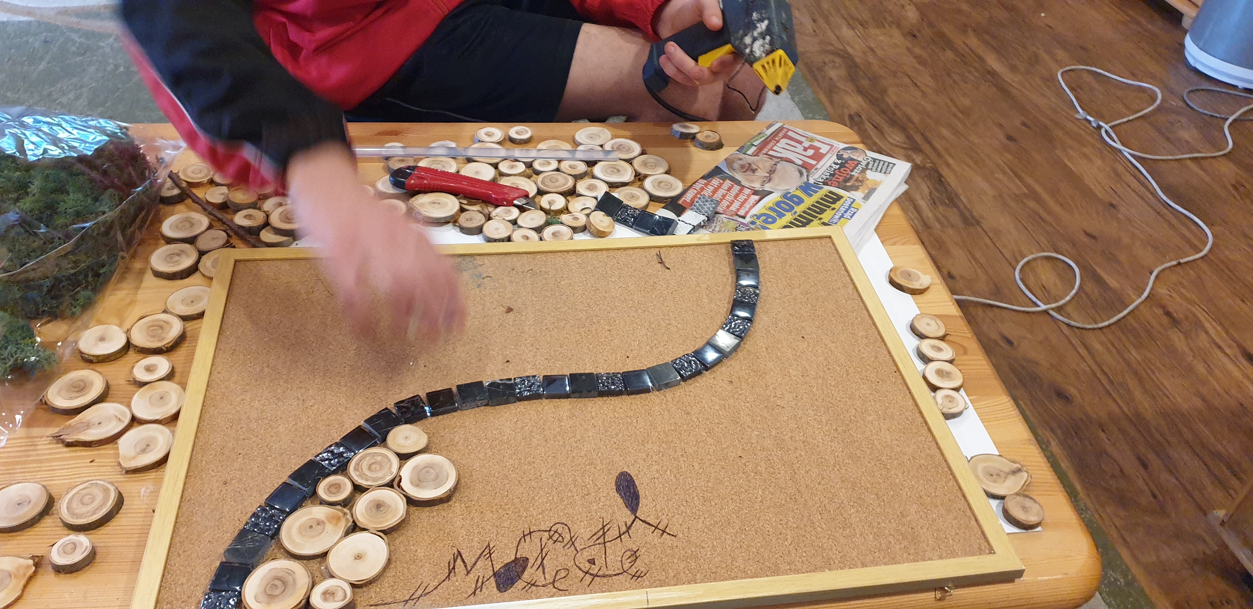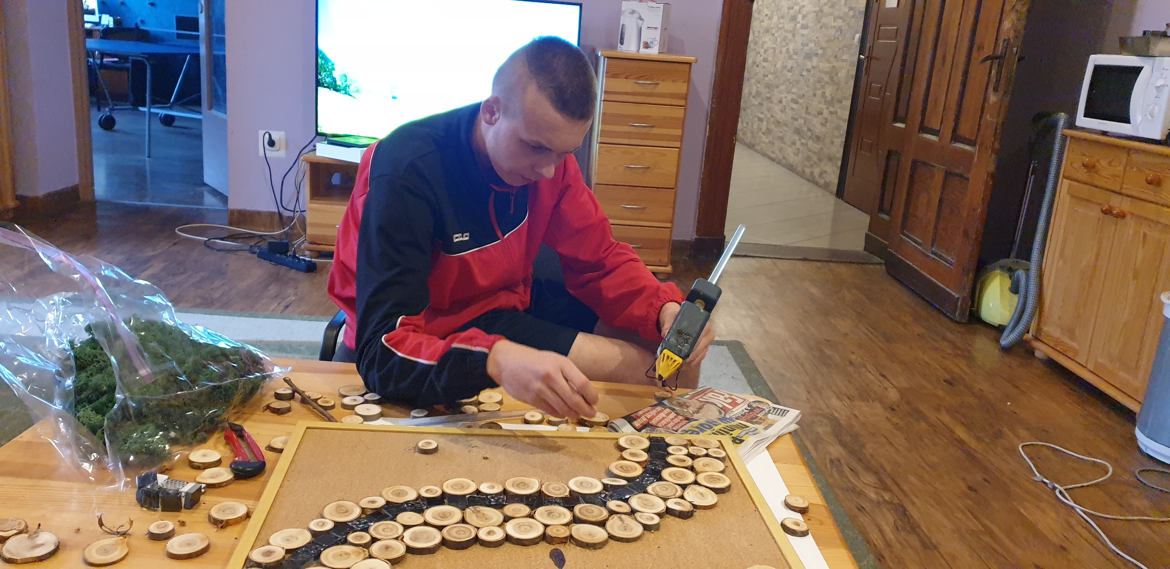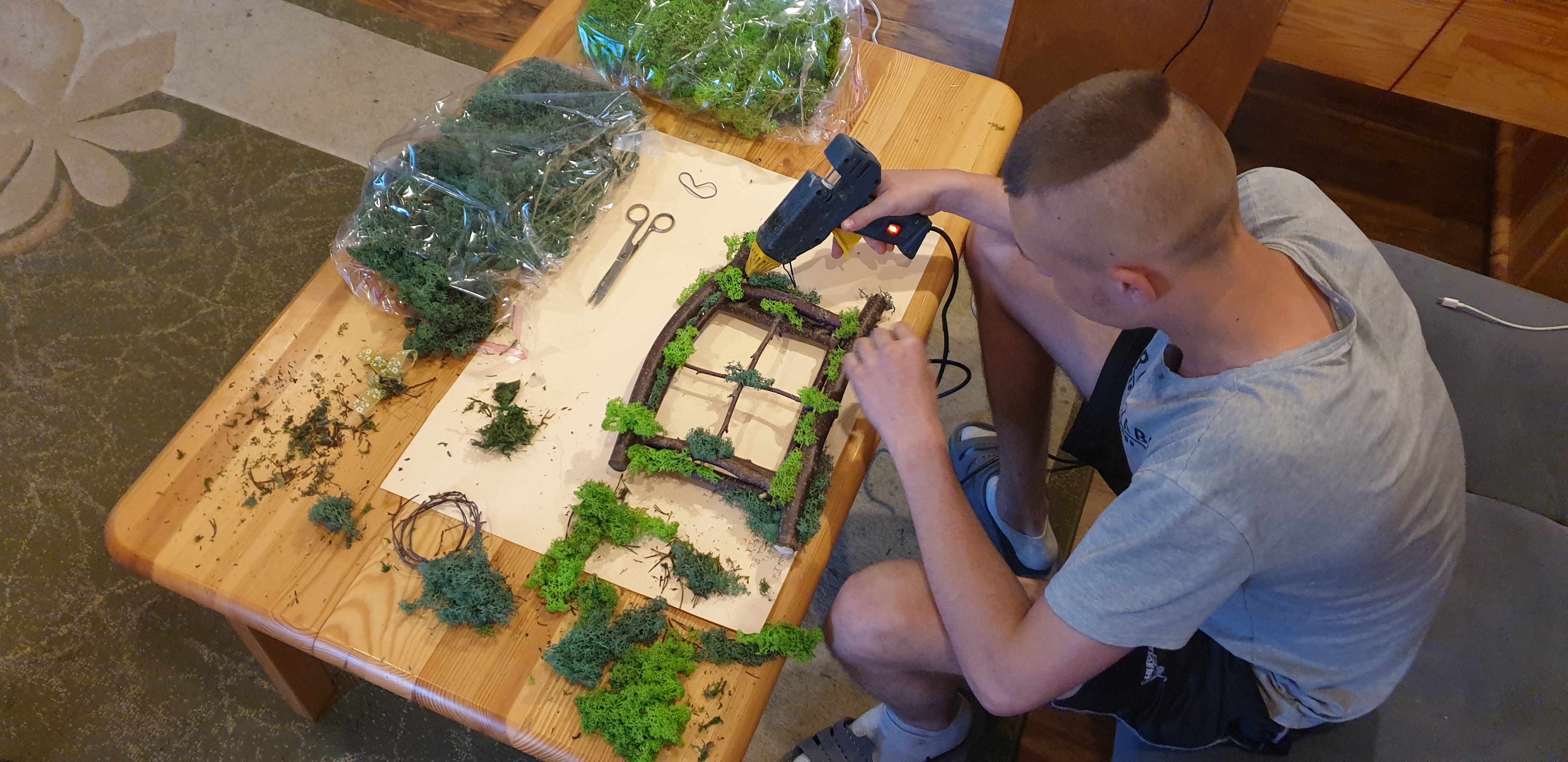 Kolejne zajęcia z arteterapii czyli wykorzystywanie w pracy terapeutycznej różnych form sztuki, a w naszym przypadku plastyki oraz różnych form przestrzennych. Proces tworzenia ma bardzo pozytywny wpływ na samopoczucie psychiczne i fizyczne podopiecznych. Na nasz warsztat trafił mech chrobotek i inne detale, które dostały „drugie życie”. Zobaczcie jak dokonuje