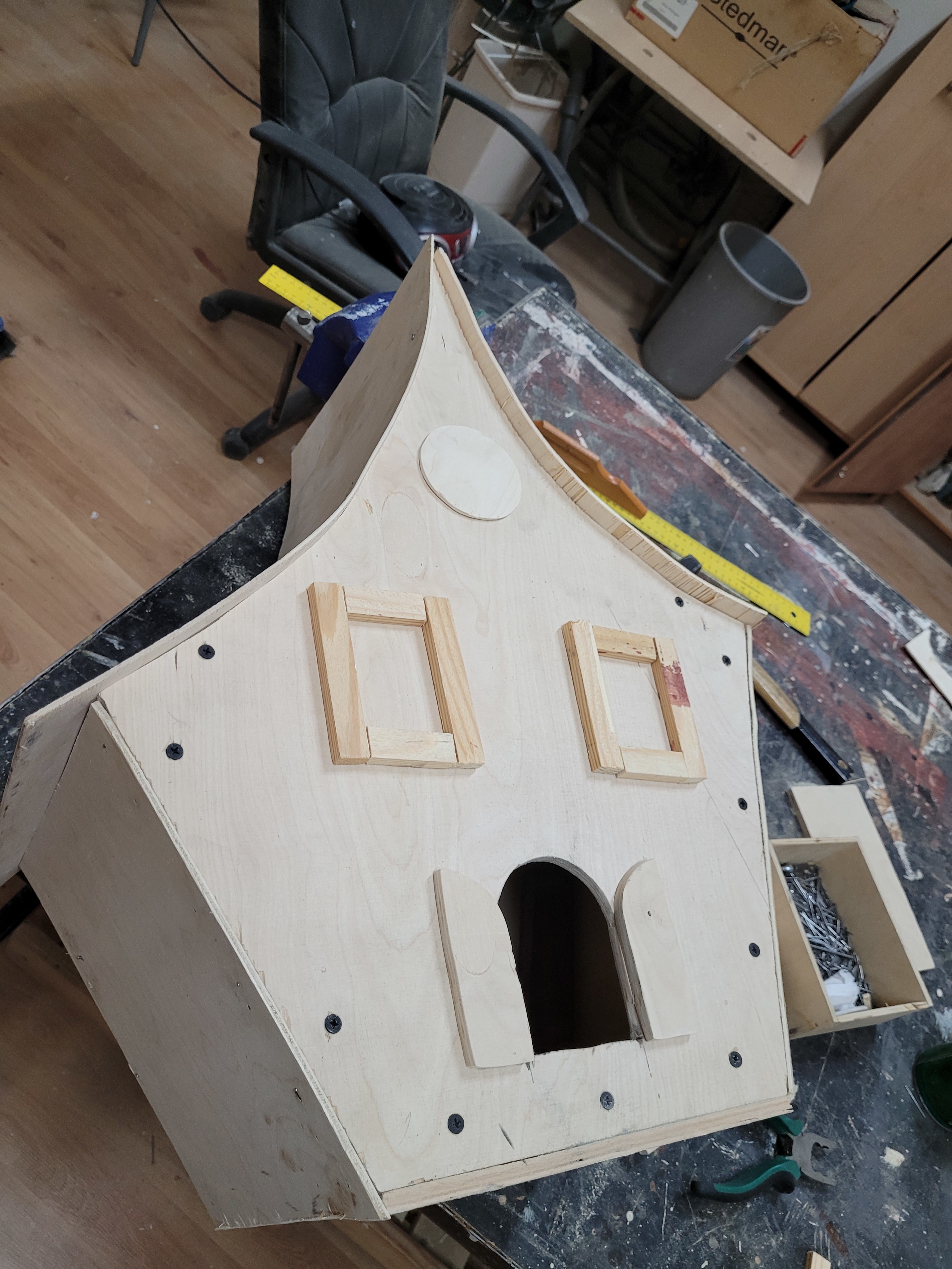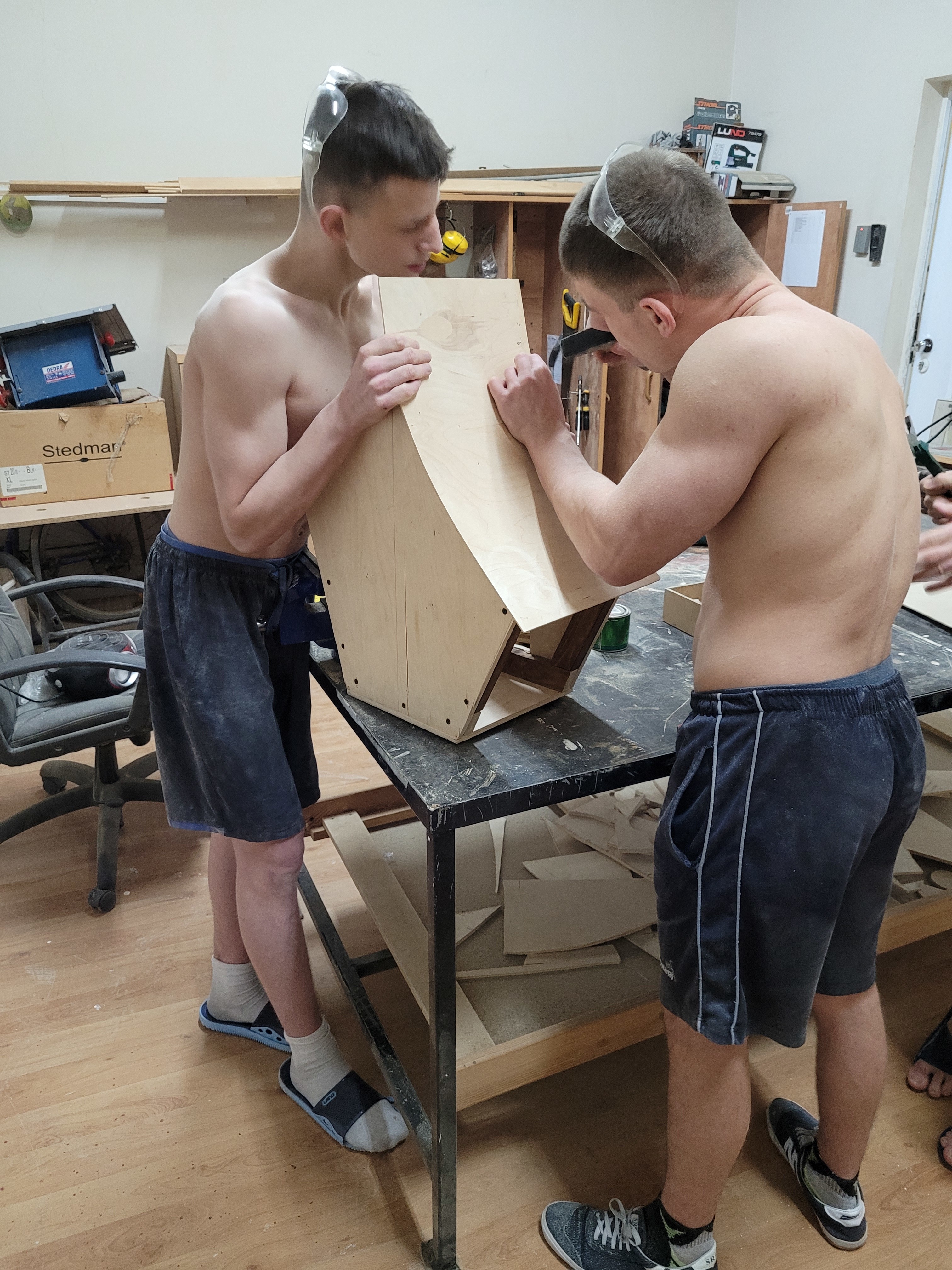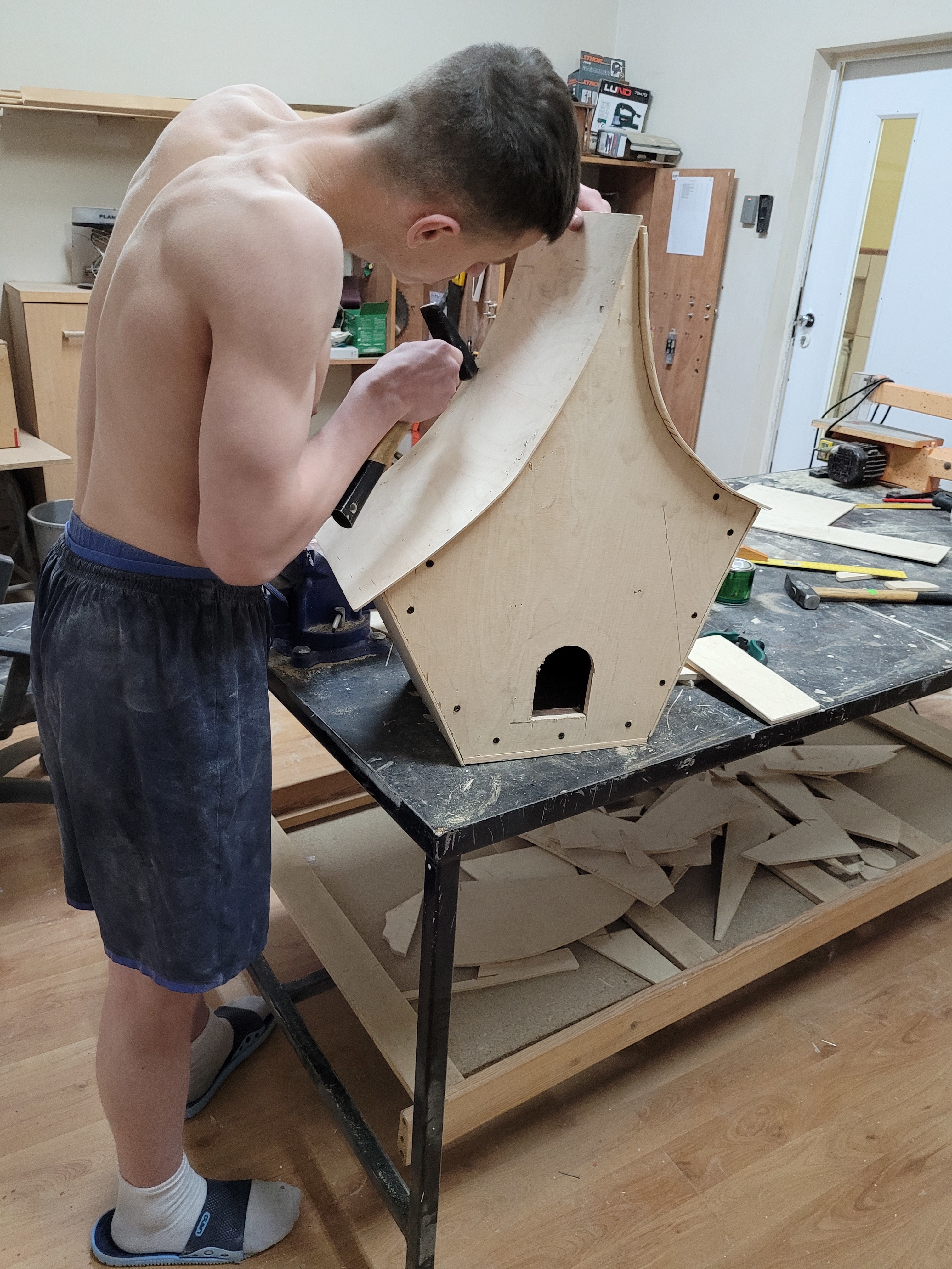 Od wielu lat budujemy domki oraz budki lęgowe dla ptaków. Tym razem na naszej stolarnii powstają domki o ciekawym kształcie. Kreatywność naszych wychowanków przy wsparciów wychowawców pozwoliła stworzyć coś niestandartowego. Teraz jeszcze wykończenie detali i domki posłużą prawdopodomnie sójką bądz innym ptaszkom.