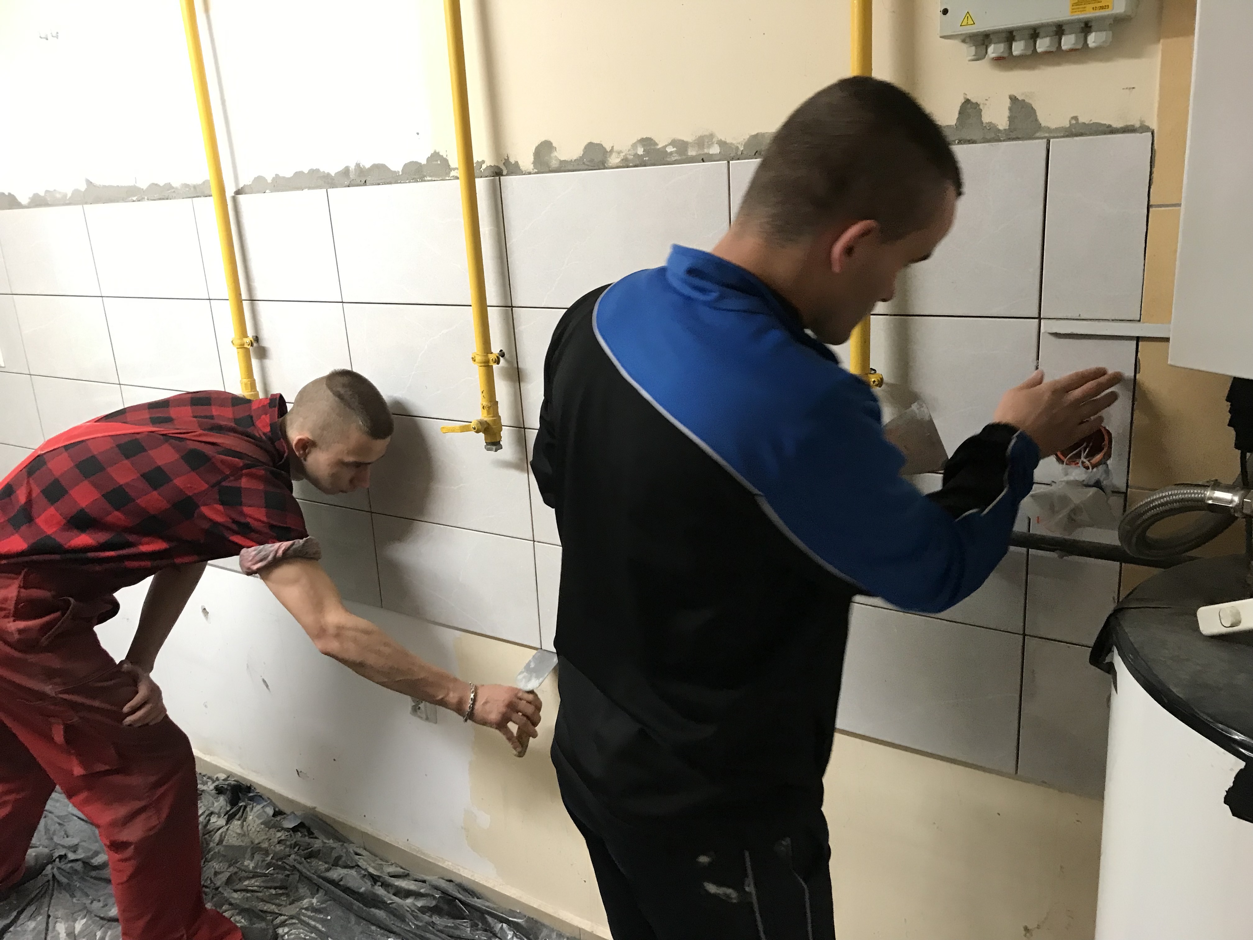 W ramach modernizacji obiektu nasi wychowankowie zamontowali nowe płytki na ścianie kuchni, wymalowali ściany i sufit oraz wykonali prace porządkowe. Zlecone zadanie pozwoliło z jednej strony udoskonalić posiadane przez naszych podopiecznych umiejętności zawodowe, a drugiej umożliwiło nieletnim rozwijać kompetencje społeczne dzięki bezpośrednim kontaktom z osobami ze środowiska otwartego. Tego typu działalność naszego zakładu sprzyja rozwijaniu współpracy z różnego rodzaju organizacjami i instytucjami zewnętrznymi, co z kolei umacnia pozytywną opinię o funkcjonowaniu ZP w Witkowie jako placówki skutecznie niosącej pomoc młodym ludziom.