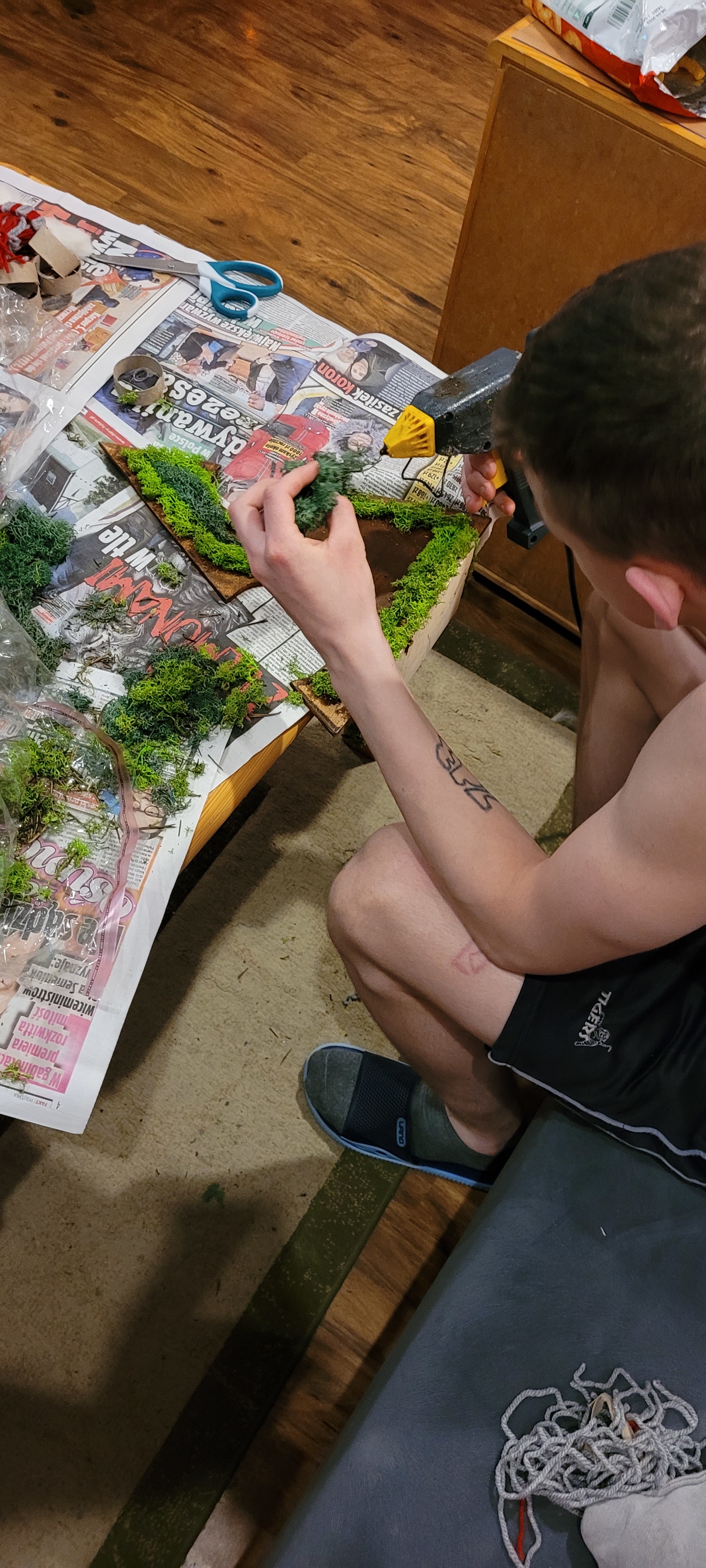 Okres przedświateczny to okazja do wykorzystania nowych pomysłów podczas tworzenia różnego rodzaju ozdób. Arteterapia przynosi dobre efekty w pracy z osobami, które mają trudności z komunikacją, wyrażaniem emocji, skłonnościami do zachowań agresywnych, uzależnionych, czy też mających niskie poczucie własnej wartości. Warto zwrócić uwagę na to, że wiele osób otwiera sie podczas zajęć, a także dostrzega w sobie możliwości uwalniania ekspresji twórcczej. Dobór materiałów, kolorystyka oraz formy to dzieło naszych chłopców. Zachęcamy do wykorzystania w pracy tego typu zajęć ale i w domach rodzinnych wspólnego tworzenia "czegokolwiek", gdyż jest to czas poświęcony naszym najbliższym, a zaaowocuje to z podwojoną siłą pozytywnymi efektami.