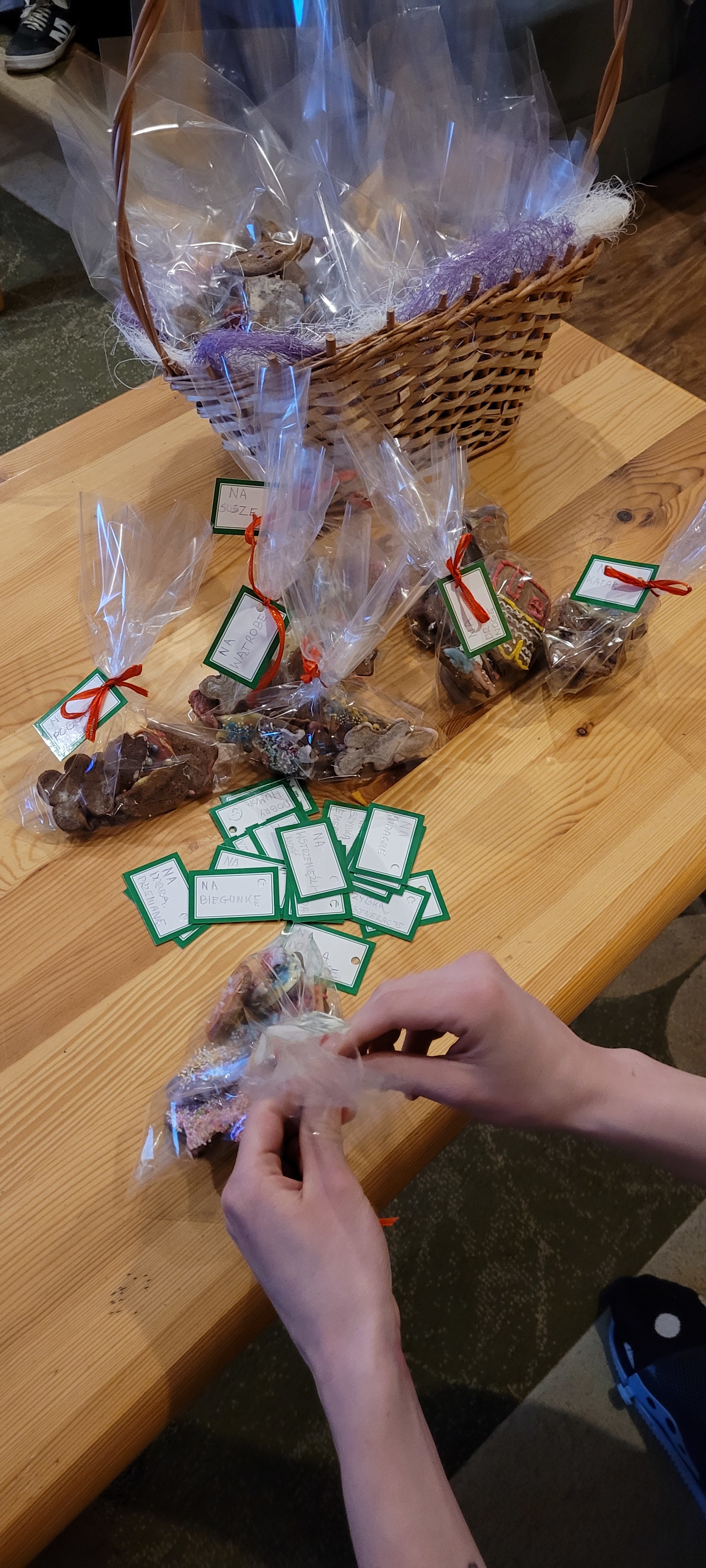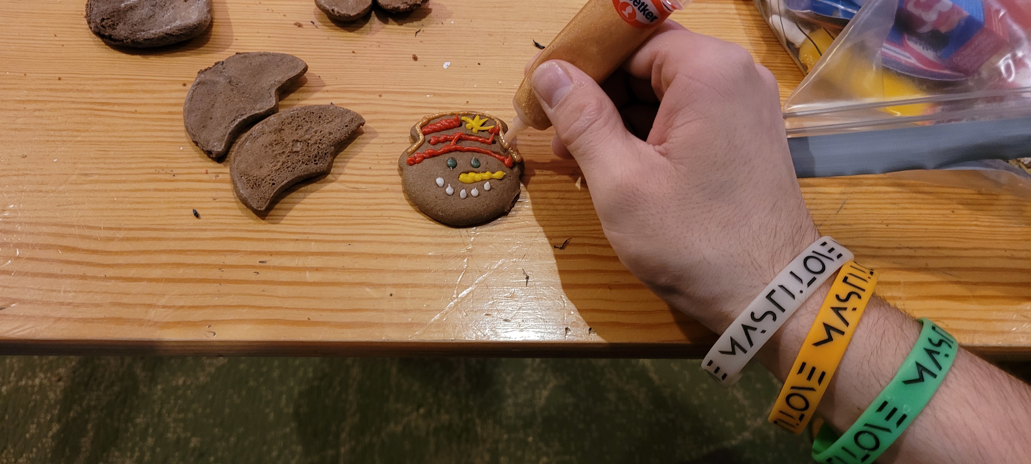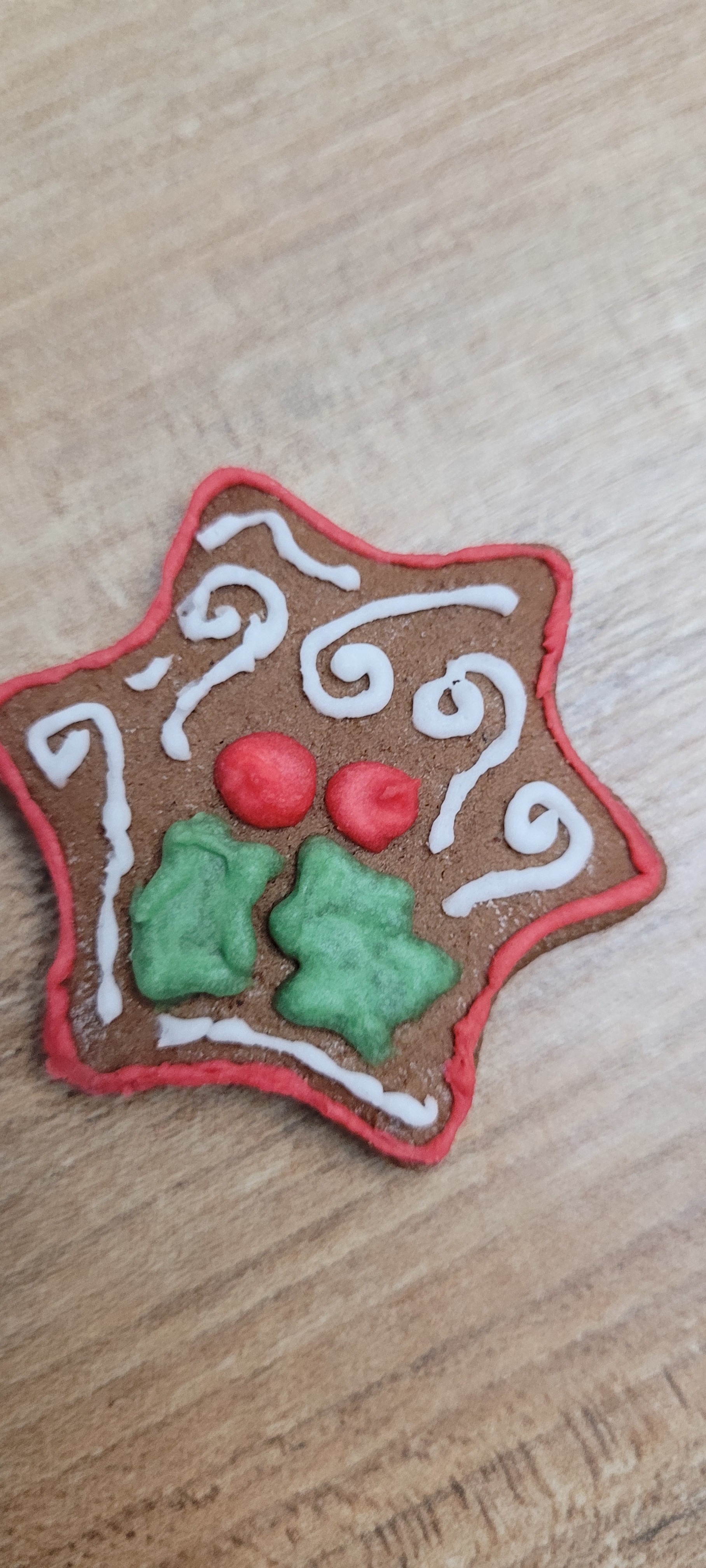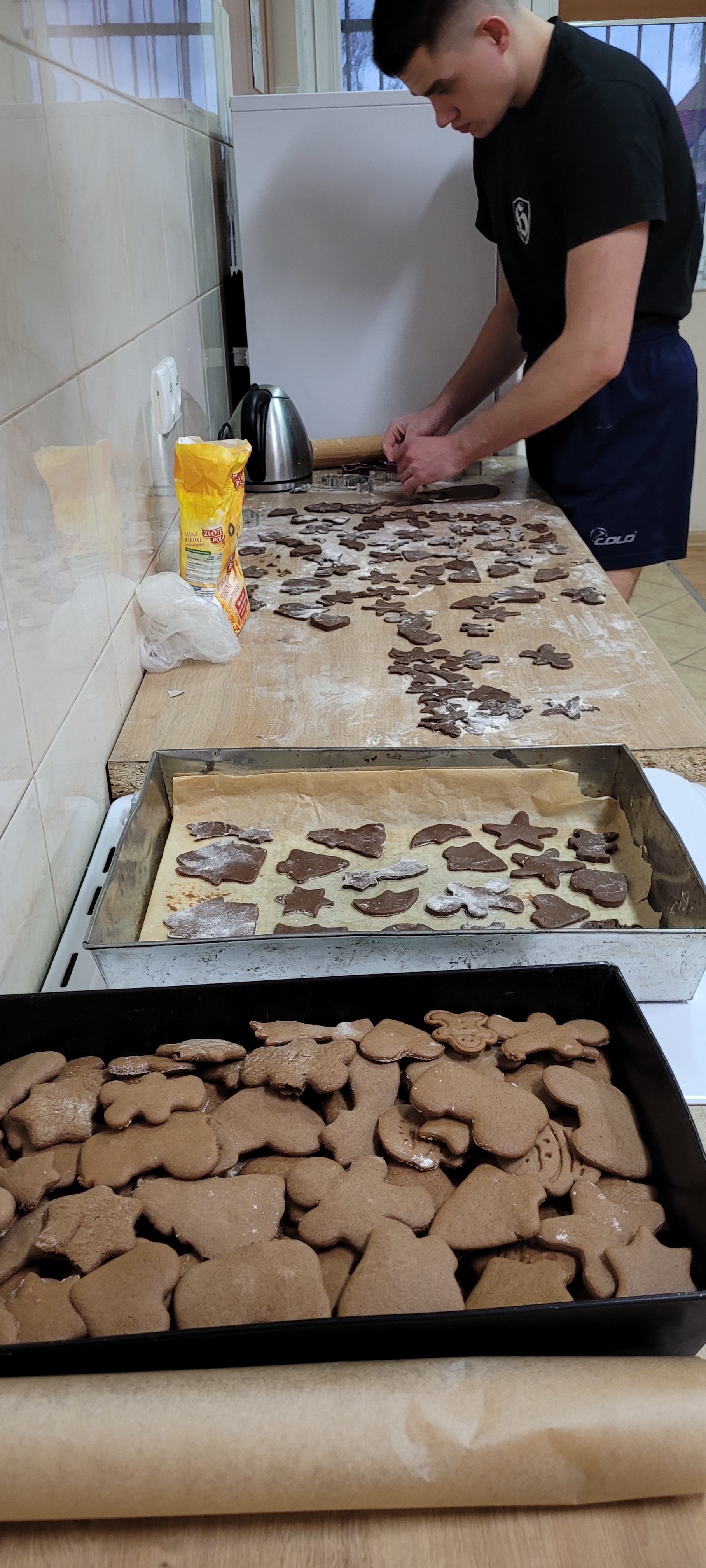 Któż z nas nie wspomina zapachu piekących się pierniczków u babci czy mamy w okolicach Świąt Bożego Narodzenia....? Kształtując u naszych podopiecznych poszanowanie do tradycji, postanowiliśmy w tym roku upiec właśnie pierniki na święta. Ile w tym było humoru gdy ciasto było albo zbyt luźne albo zbyt suche....no cóż wszak to nasze pierwsze wypieki. W efekcie udało się rozwałkować masę i przygotować świąteczne formy do wycięcia naszych pierniczków. Piekarnik nastawiony na odpowiednią temperaturę wsadzamy na kilka minut i upieczone. Ten magiczny zapach przyprawy do piernika rozszedł się po całej placówce. No ale zabawa dopiero sie zaczęła podczas dekorowania.....oj fantazja naszych chłopców była tu na najwyższym poziomie. Postanowiliśmy potraktować pierniczki jako drobny prezencik/amulecik dla uczestników naszej wigilii. I tak na każdej paczuszce przywiesiliśmy "bilecik" z informacją na co te magiczne świąteczne pierniczki pomagają, wszak jest to moc wigilii.
