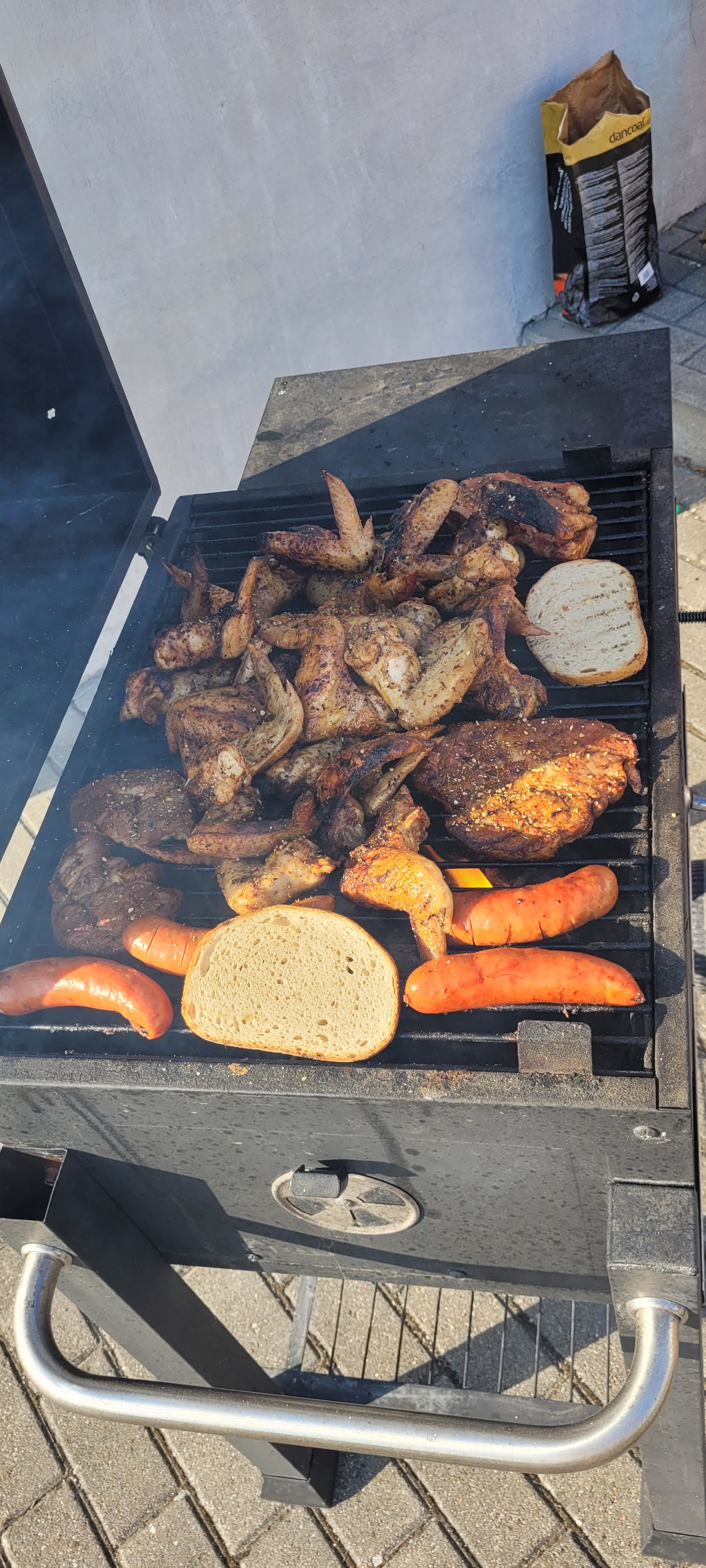 Przyszły ciepłe dni ale na grila zawsze jest ochota. W tym roku postanowiliśmy rozpocząć sezon grilowy na bogato. Na ruszcie oczywiście królowa grila, a więc kiełbaska, karkóweczka oraz skrzydełka z kurczaka. Wszystko dobrze przyprawione oraz podane z chrupiącym chlebkiem i dodatkami.
